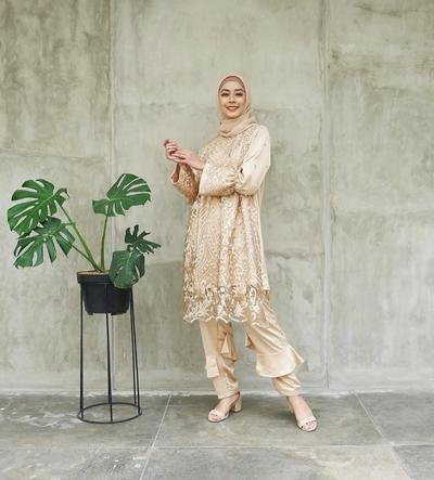 Setelan Baju Kebaya Tunik Brukat dan Celana Panjang RYN . Sumber Gambar : www.topkeren.com